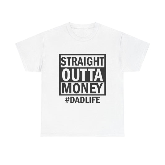 Straight Outta Money Dad Life Tee, Unisex Heavy Cotton T-Shirt, Cool Dad Gift, Funny Shirt for Fathers Day, Casual Wear, Father's Day Gift